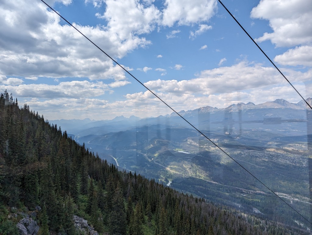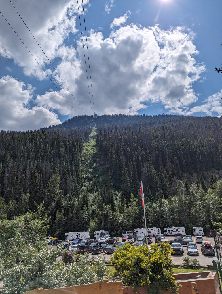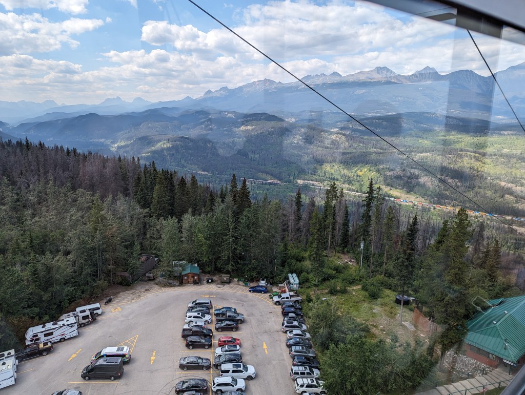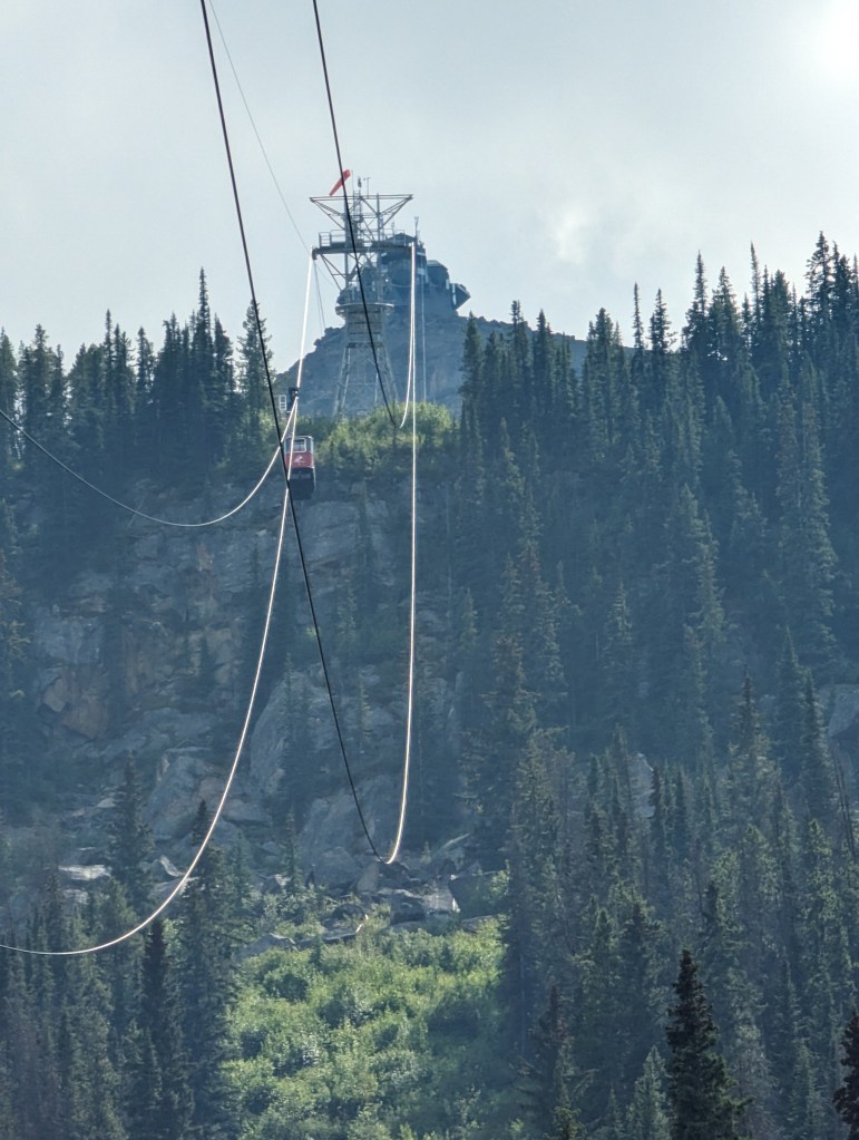 We got going around 1 in the afternoon and headed out towards Jasper SkyTrain. This is a ride up the mountain, 1.4km to the top of one of the local mountains.